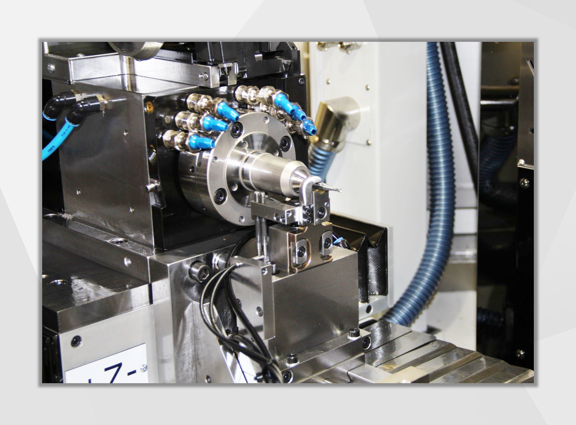 Beim direkten Beladen der Rohlinge mit einem entsprechenden Greifer kommt ein automatisches Hochpräzisions-Spannsystem zum Einsatz. Die Beladung wird mit einem Doppelgreifer-System ausgeführt